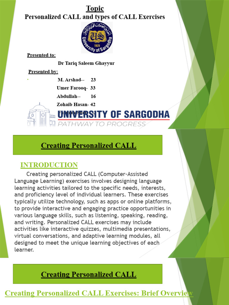 Personalized CALL and Types of CALL Exercises PDF Multiple Choice