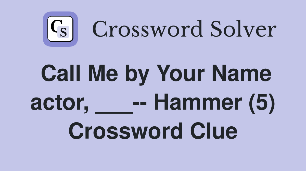 Call Me by Your Name actor Hammer (5) Crossword Clue Answers