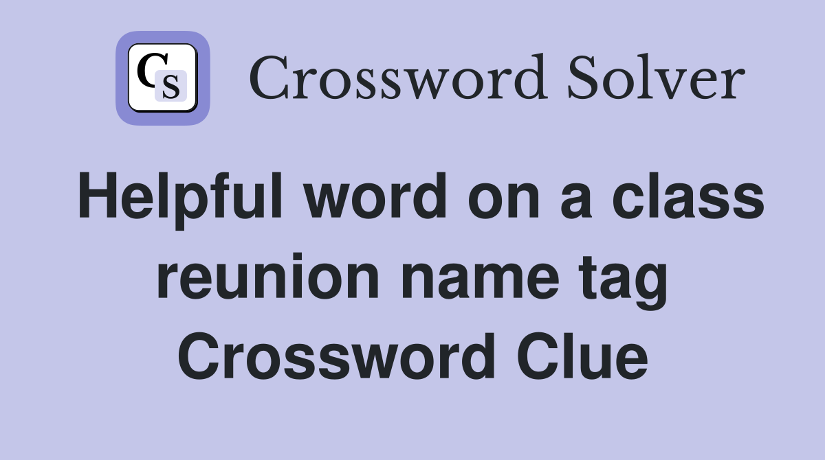Helpful word on a class reunion name tag Crossword Clue Answers