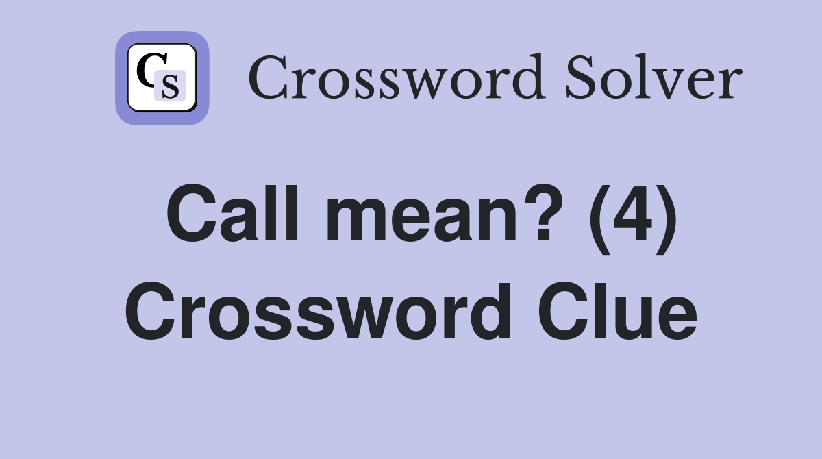 Call mean? (4) Crossword Clue Answers Crossword Solver