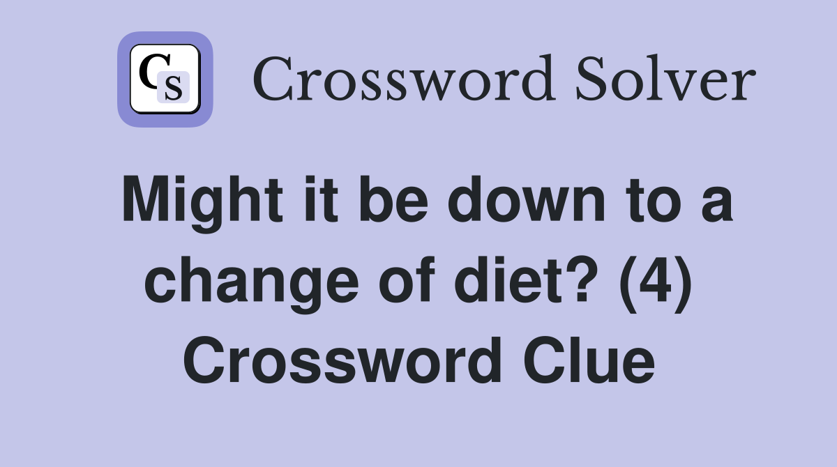 Might it be down to a change of diet? (4) Crossword Clue Answers