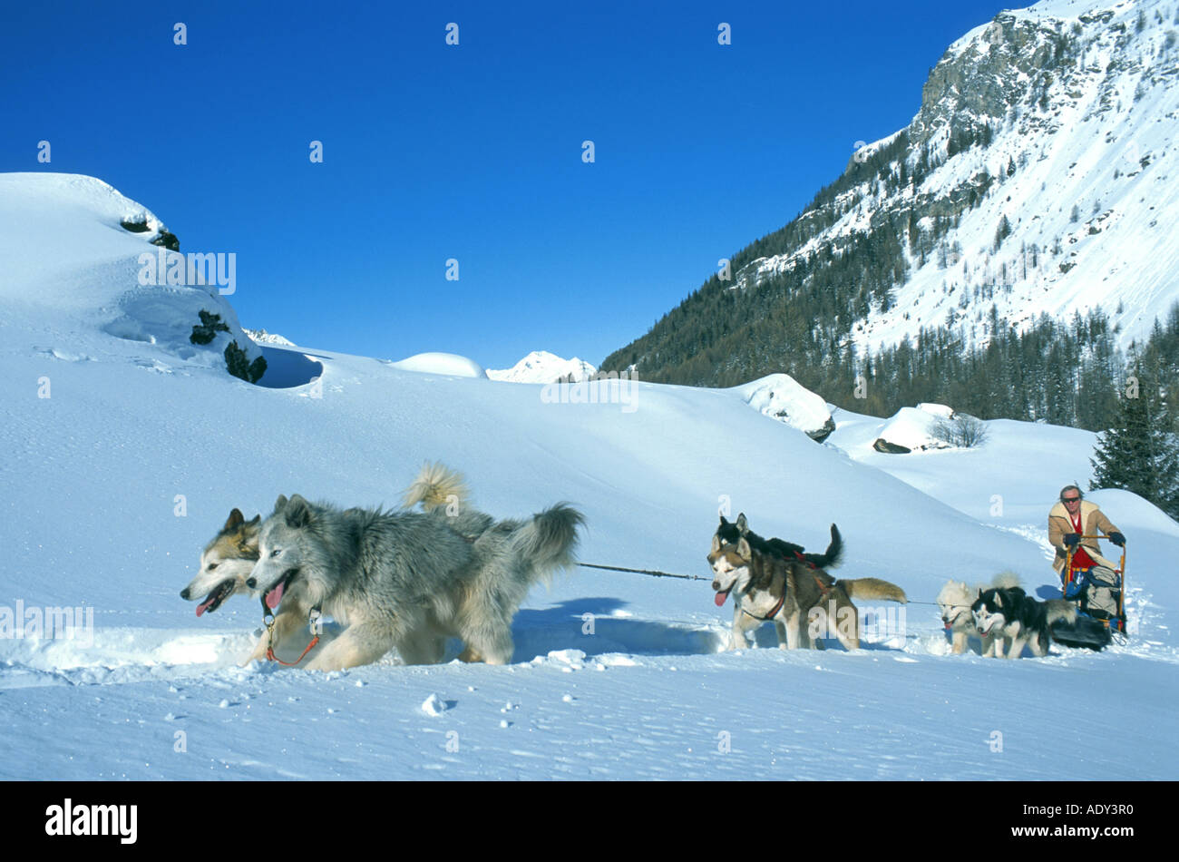 Trained sled dogs hi res stock photography and images Alamy