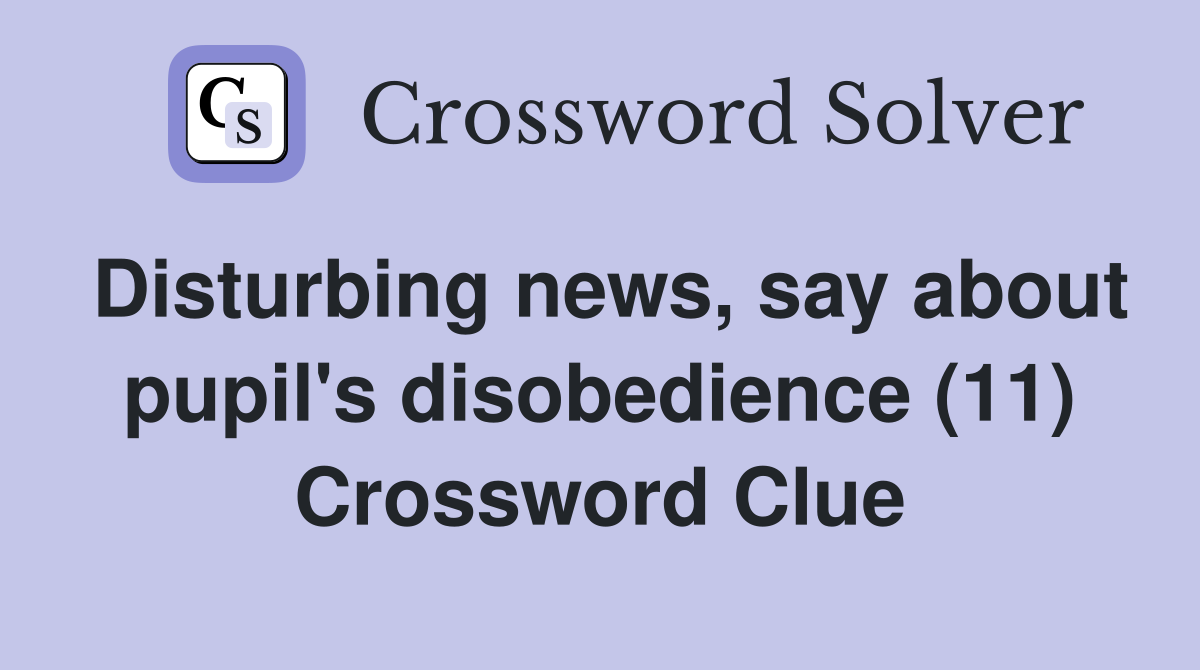 Disturbing news say about pupil #39 s disobedience (11) Crossword Clue