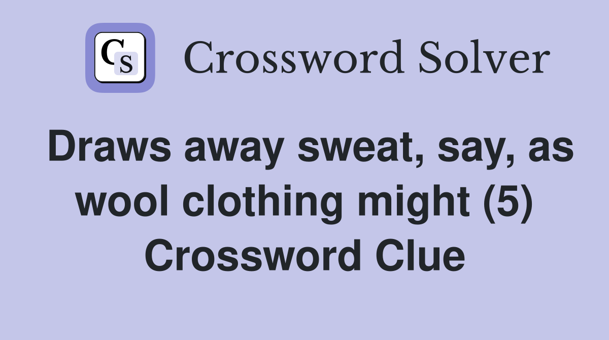 Draws away sweat say as wool clothing might (5) Crossword Clue