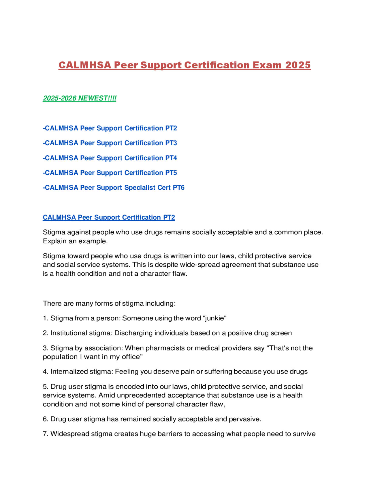 CALMHSA Peer Support Certification Exam 2025: Study Guide with