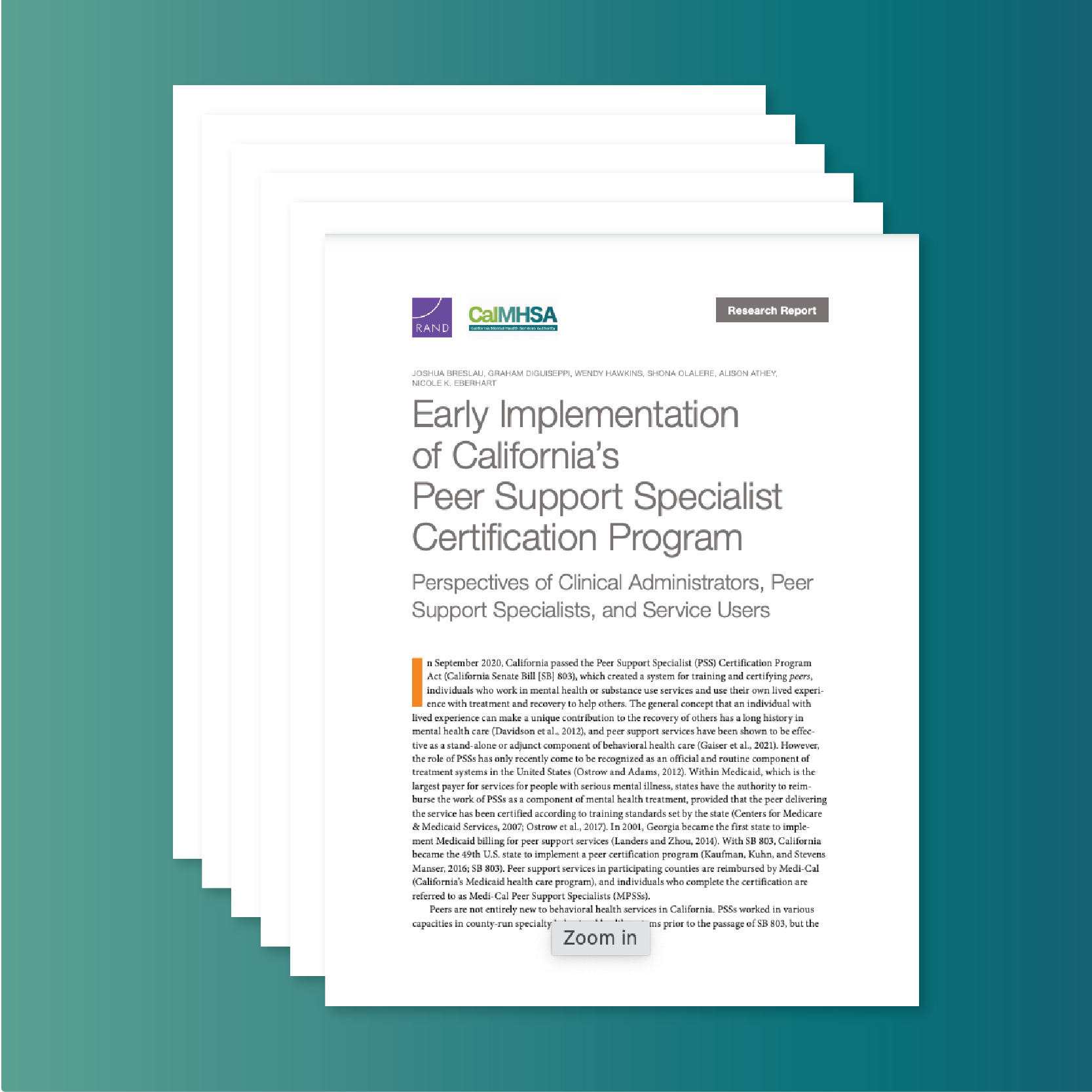 RAND Study Finds Value in Peer Certification for Peers Clients and
