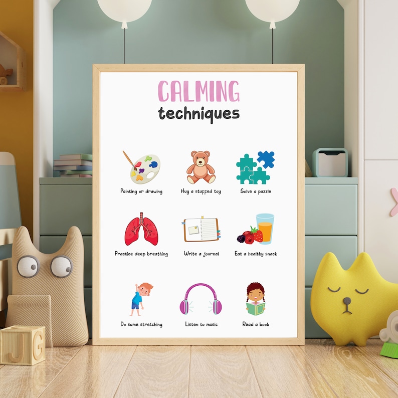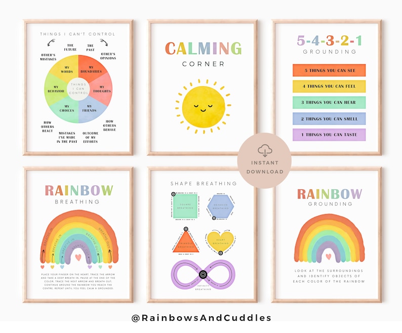 Set of 6 calming corner posters coping techniques wall art for kids