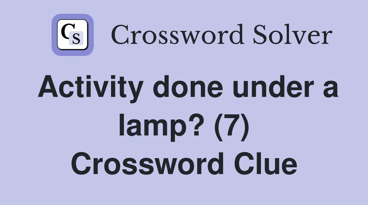 Activity done under a lamp? (7) Crossword Clue Answers Crossword Solver