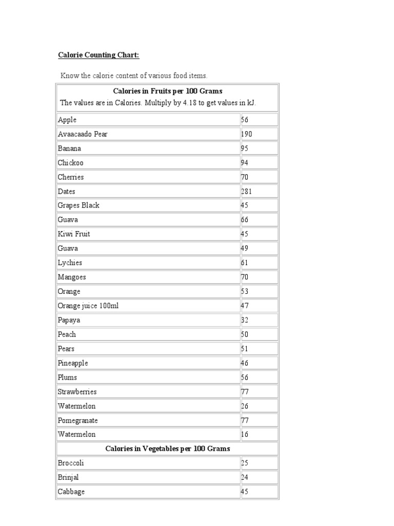 Calorie Counting Chart Printable Free Web Deciphering The Amount Of