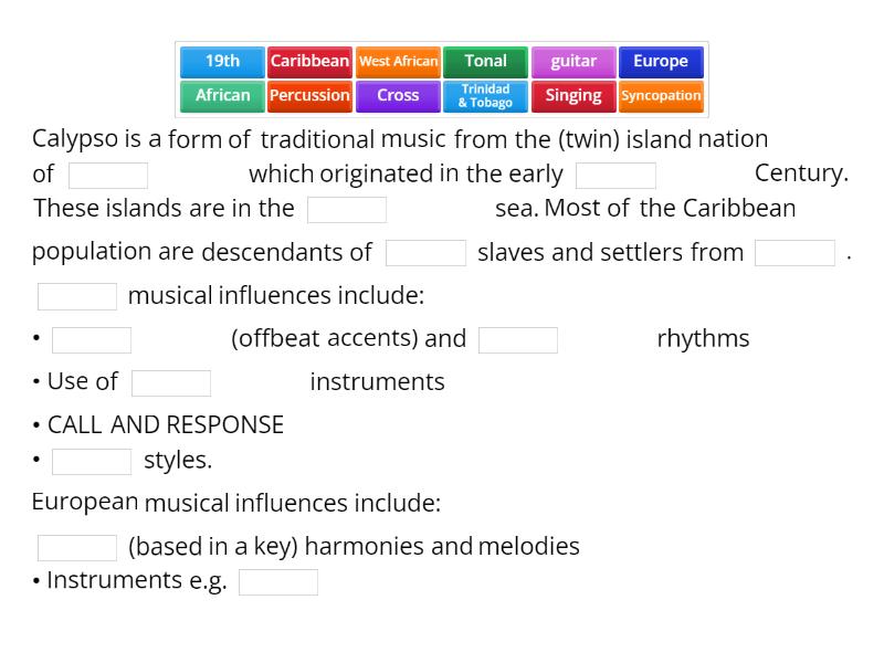Calypso Music History Context Completa la oración