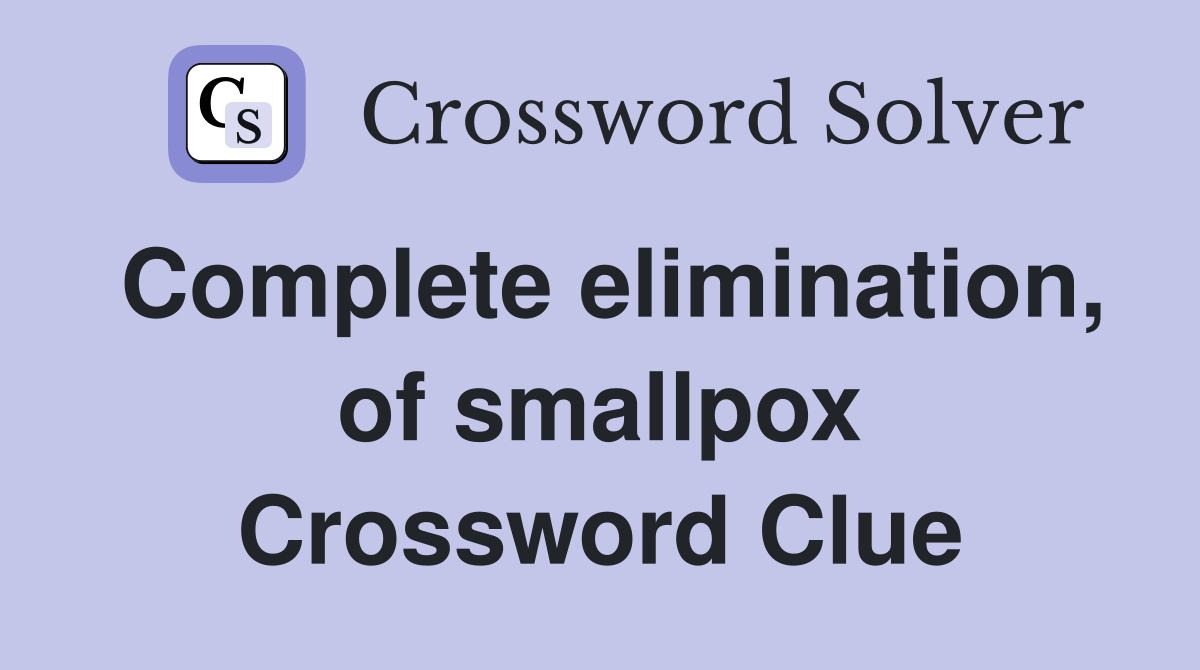 Complete elimination of smallpox Crossword Clue Answers Crossword