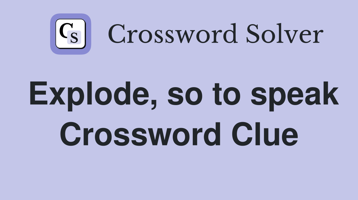 Explode so to speak Crossword Clue Answers Crossword Solver