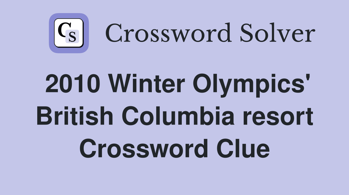 2010 Winter Olympics #39 British Columbia resort Crossword Clue Answers