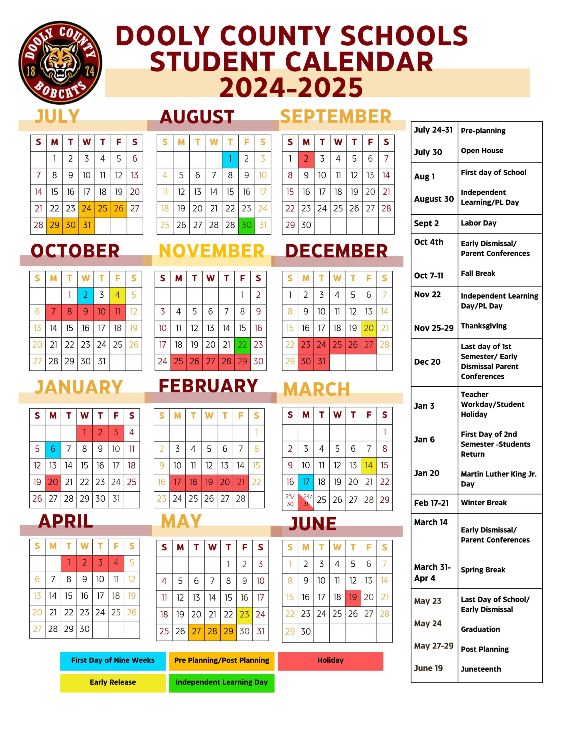 Dooly County ga Schools Calendar 24 25 pdf EduCounty