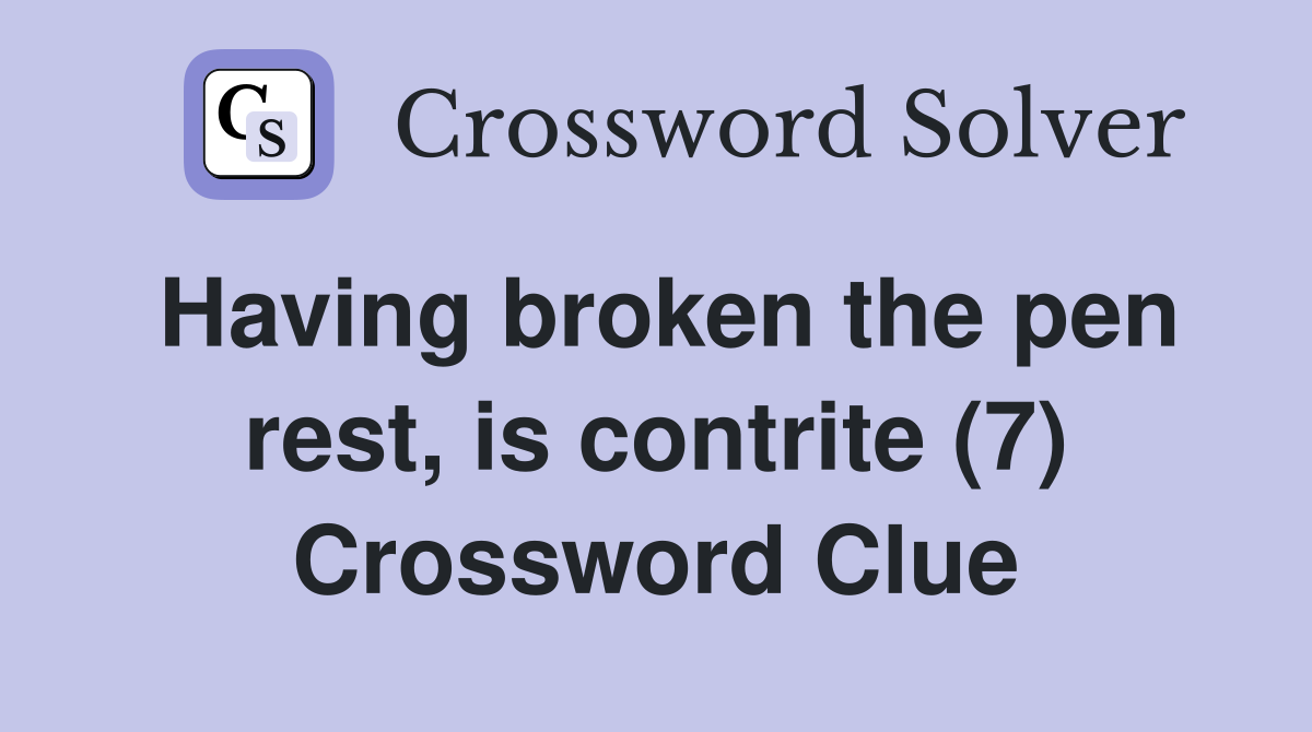 Having broken the pen rest is contrite (7) Crossword Clue Answers
