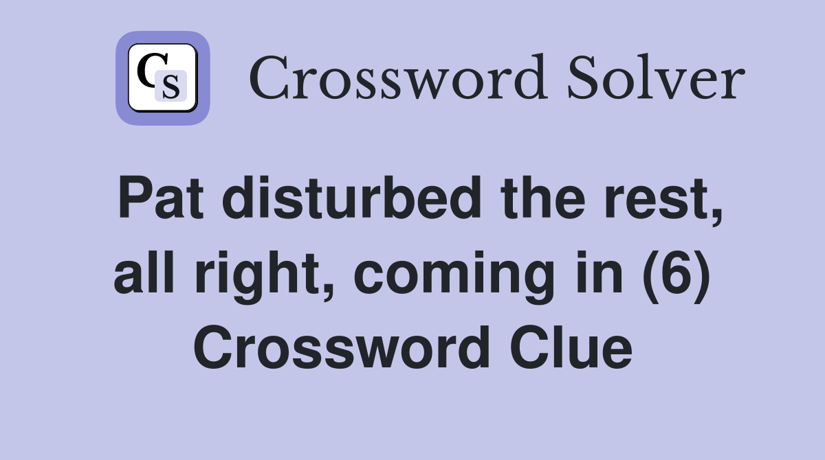 Pat disturbed the rest all right coming in (6) Crossword Clue