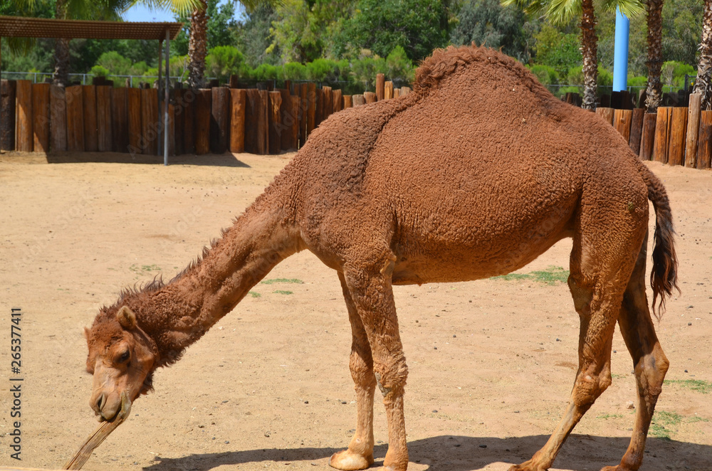 Camel is an ungulate within the genus Camelus bearing distinctive