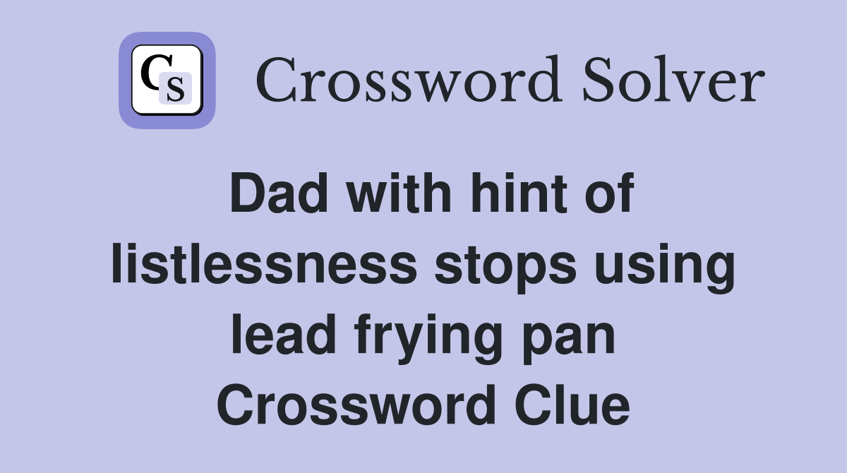 Dad with hint of listlessness stops using lead frying pan Crossword