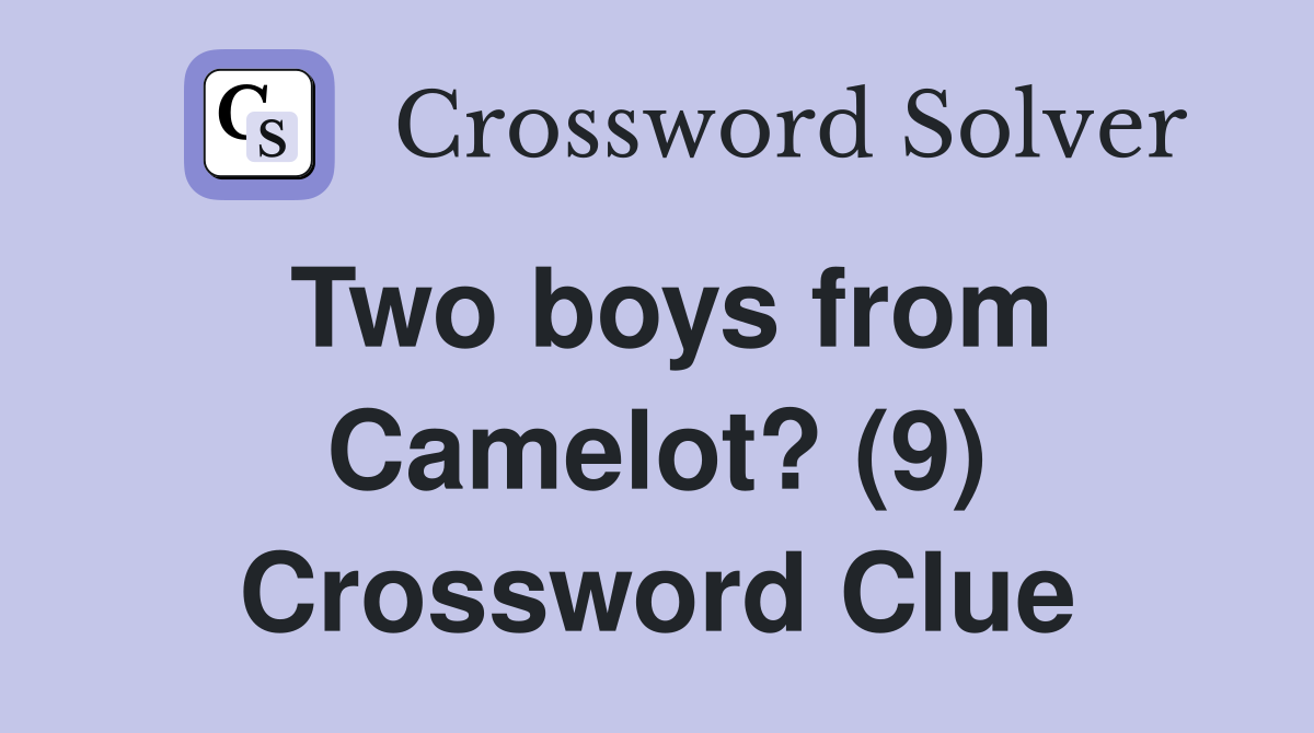 Two boys from Camelot? (9) Crossword Clue Answers Crossword Solver