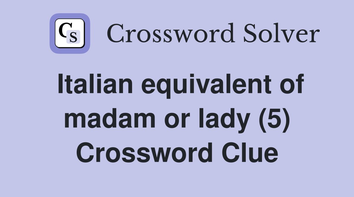Italian equivalent of madam or lady (5) Crossword Clue Answers