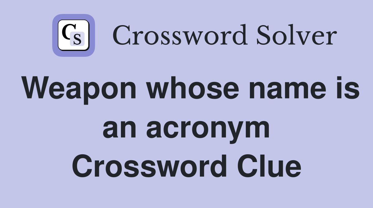 Weapon whose name is an acronym Crossword Clue Answers Crossword Solver
