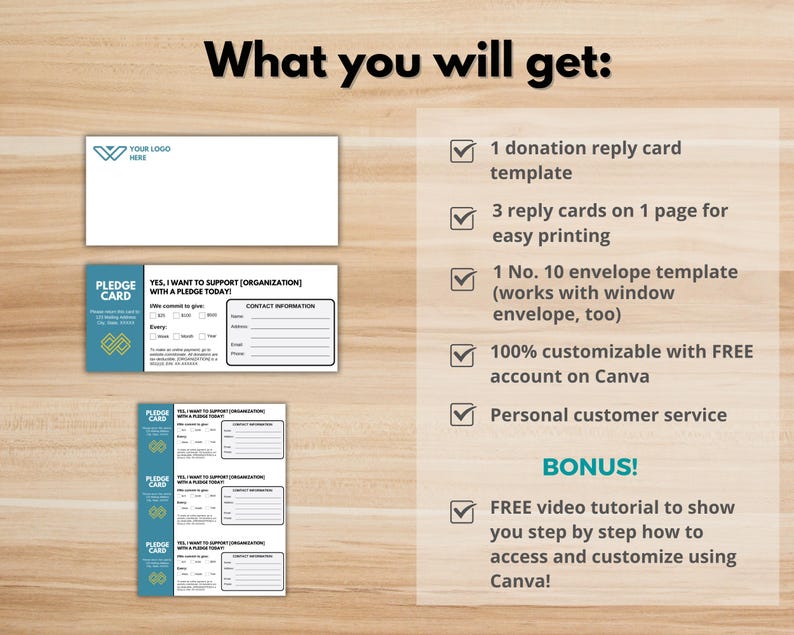 Editable Nonprofit Pledge Card Template: Canva Design Fundraising