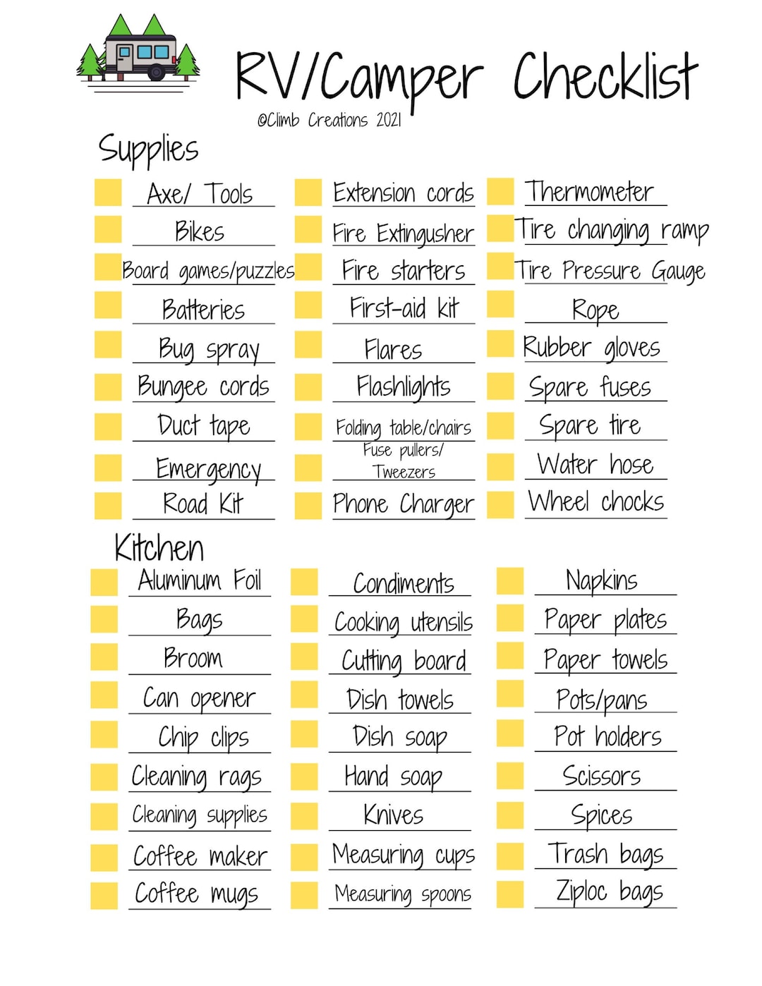 Camper Checklist Printable