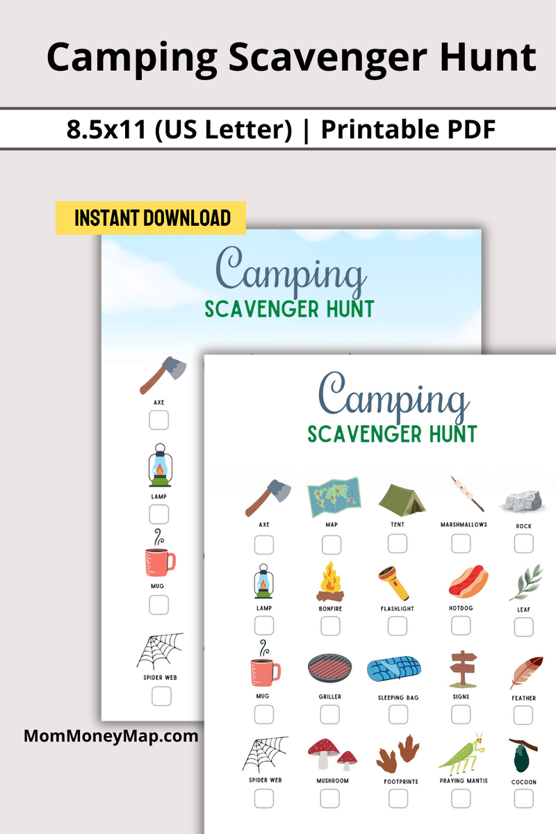 Camping Scavenger Hunt Printable PDF for Kids Outdoor Fun Mom Money Map