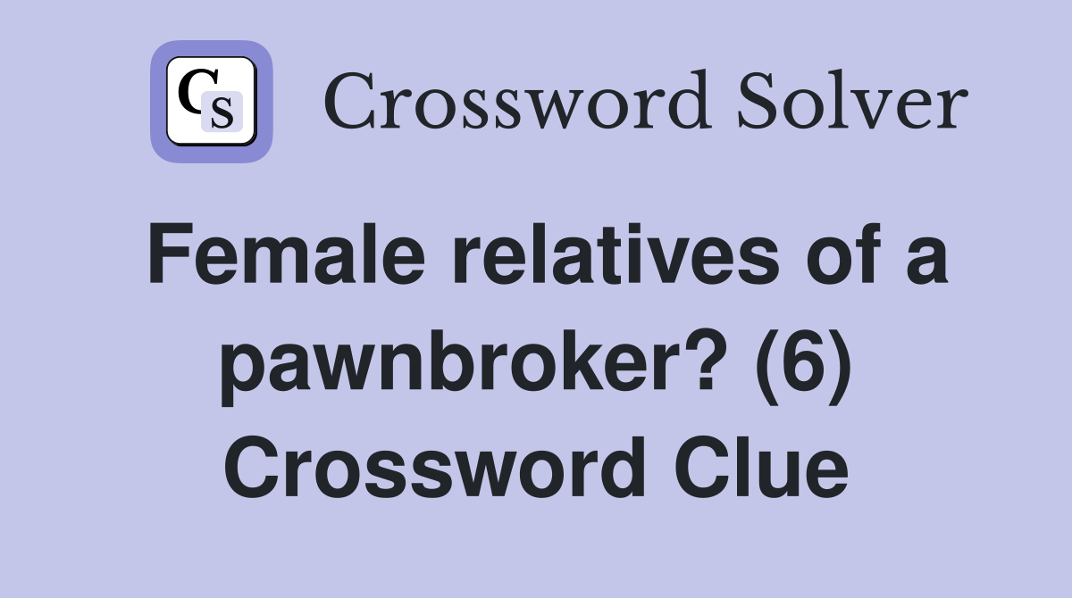 Female relatives of a pawnbroker? (6) Crossword Clue Answers