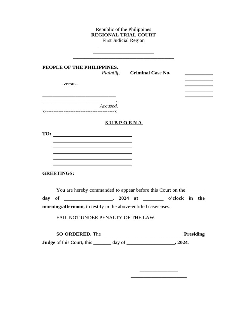 Subpoena for Court Appearance PDF