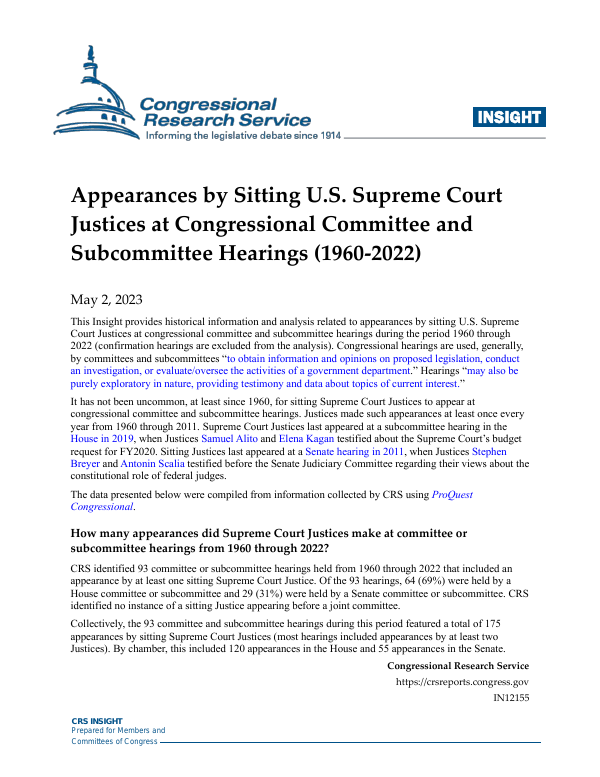 Appearances by Sitting U S Supreme Court Justices at Congressional