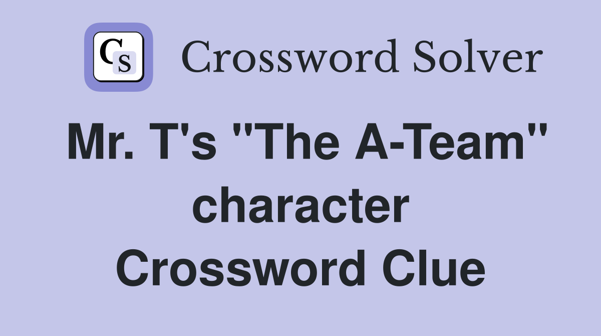 Mr T #39 s quot The A Team quot character Crossword Clue Answers Crossword Solver