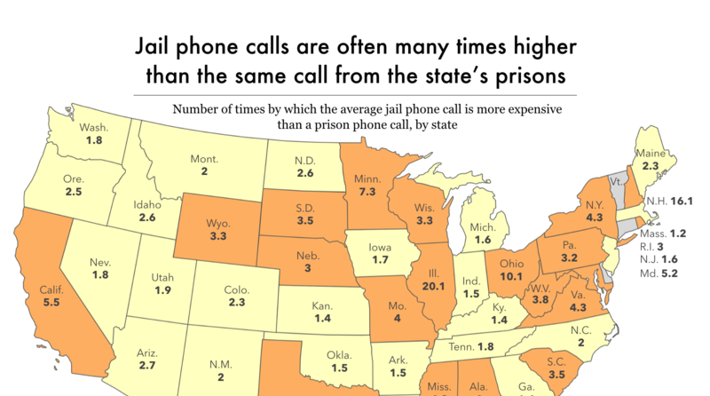 Jail phone calls are often many times higher than the same Prison