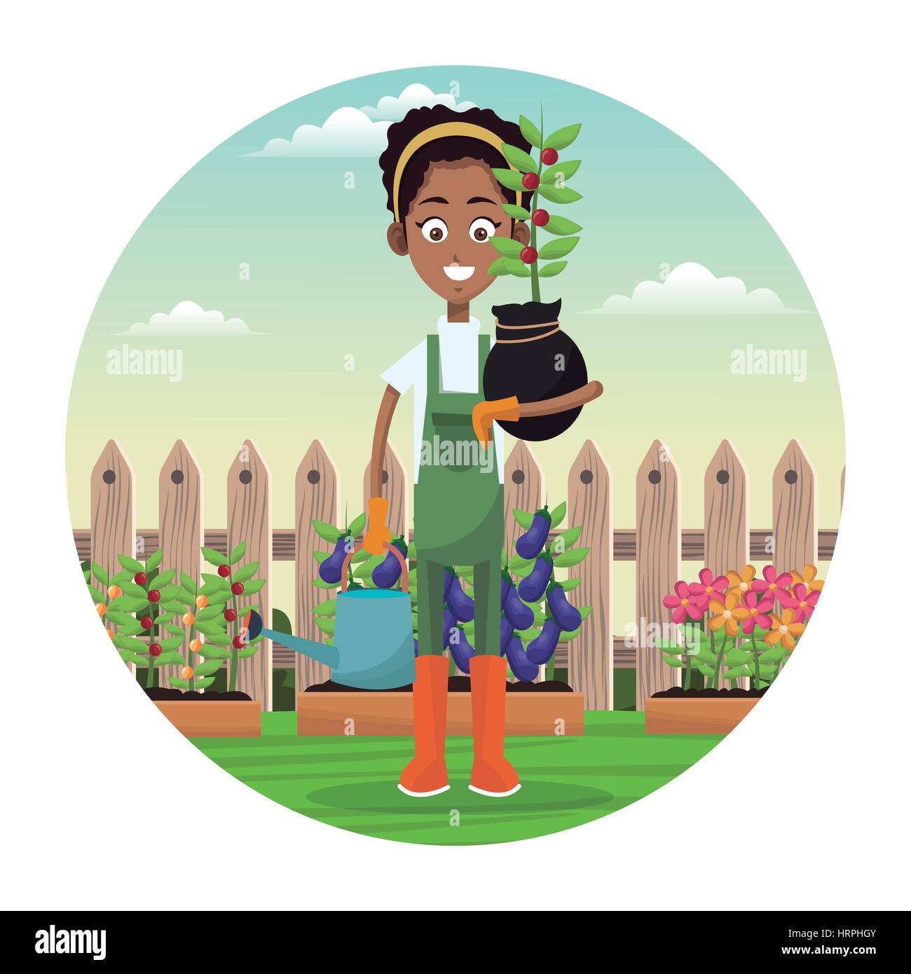 Woman plants watering can Cut Out Stock Images Pictures Alamy