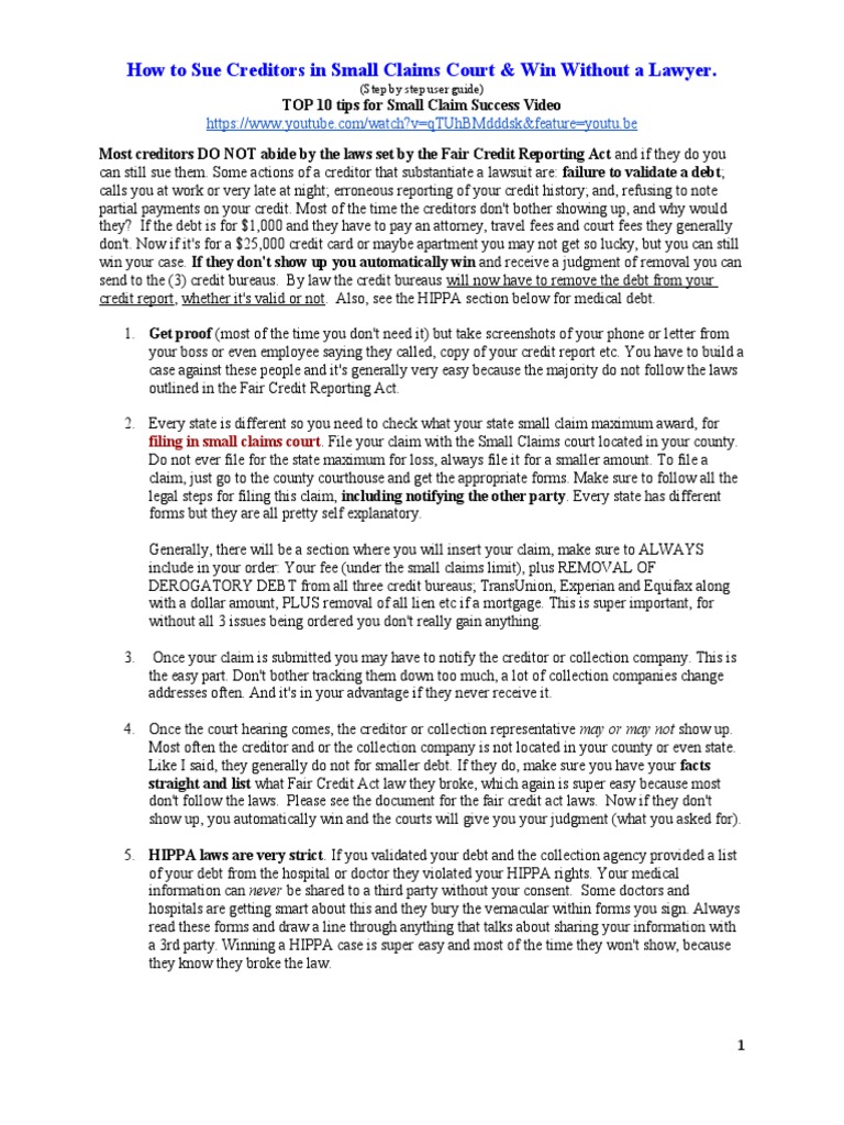 How To Sue Creditors in Small Claims Court Win Without A Lawyer