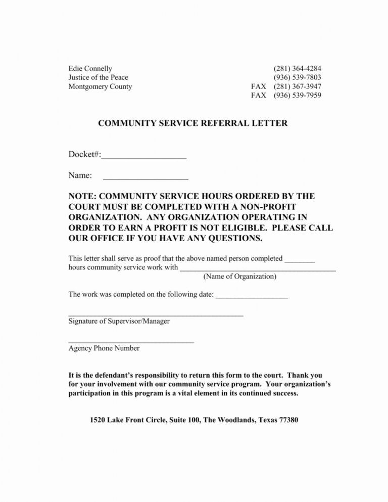 Community Service Template For Court