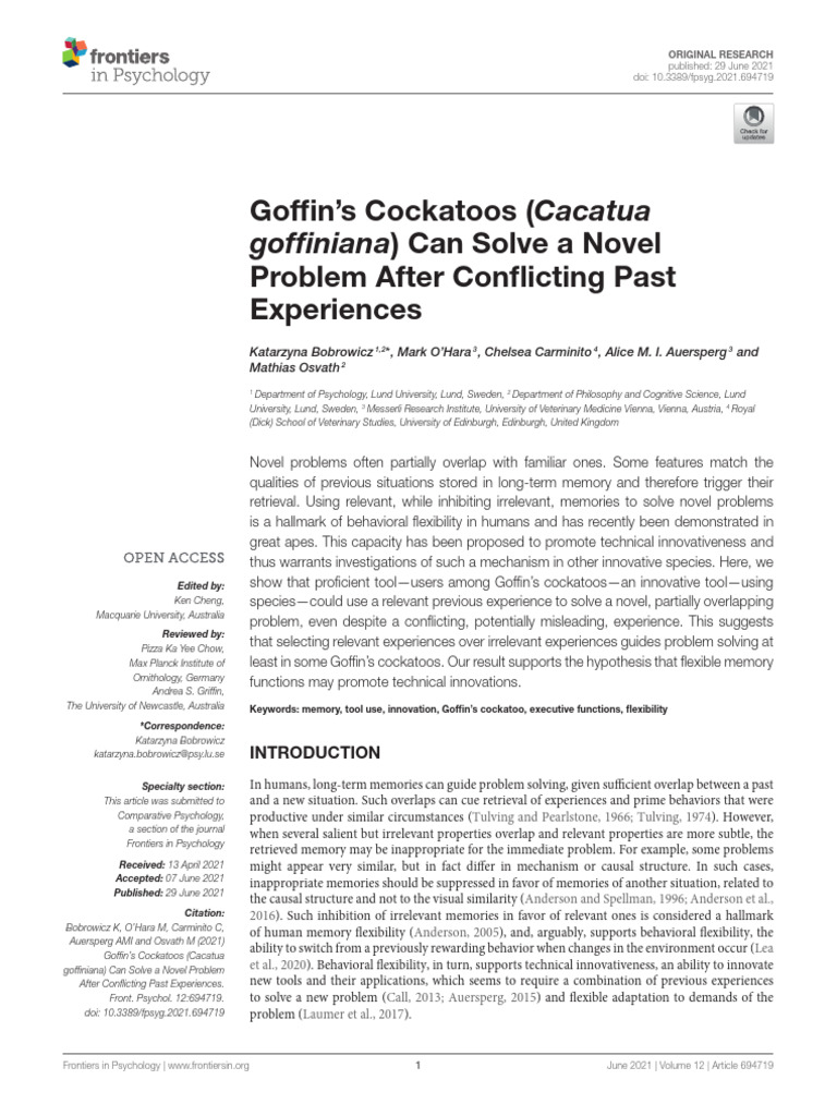 Goffins Cockatoos Cacatua Goffiniana Can Solve a PDF Memory