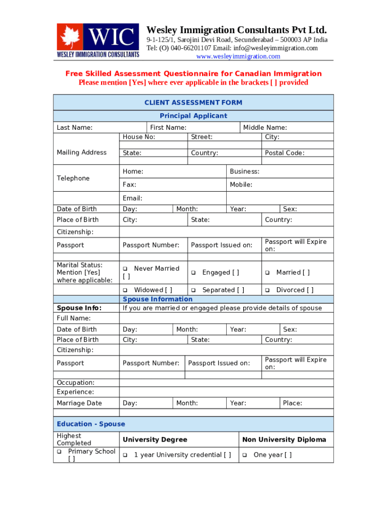 Online Assessment Questionnaire for Canadian Doc Template pdfFiller