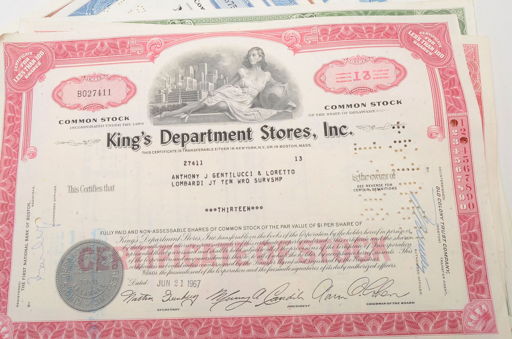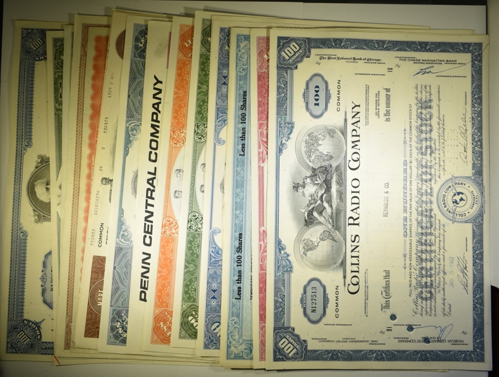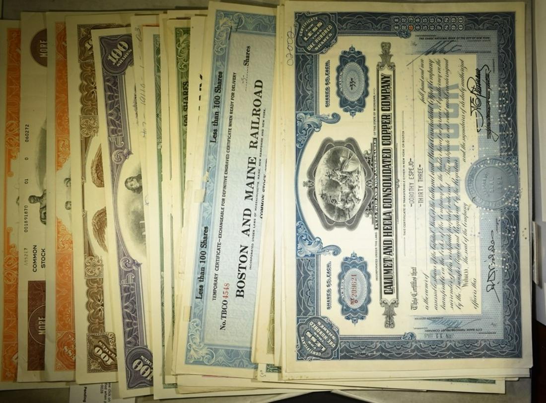 Assortment Of Issued And Cancelled Stock Certificates