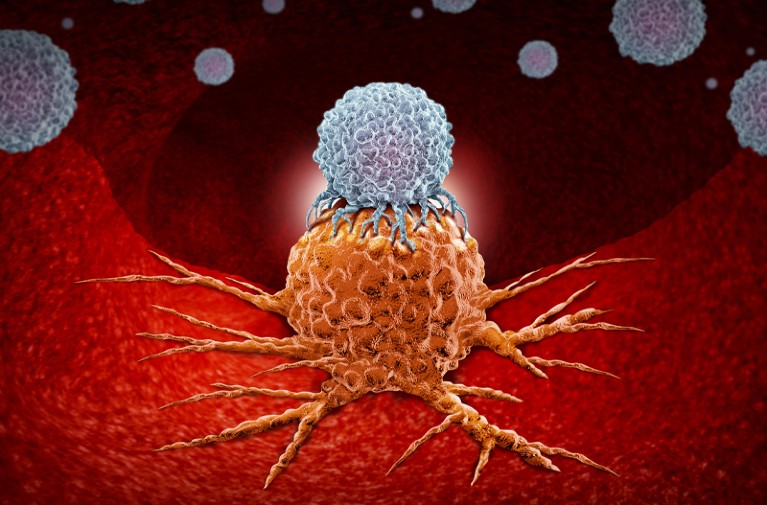 T cell vs cancer cell editorial 3D composite image on Behance