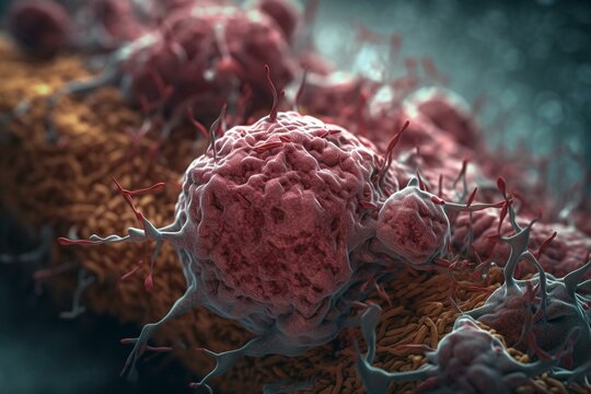 Microscopic View of a Cancer Cell with Tentacles Premium AI generated