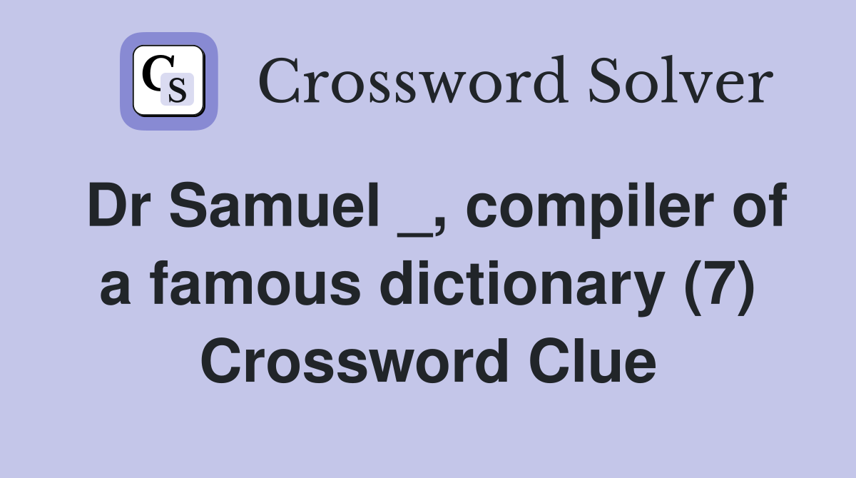 Dr Samuel compiler of a famous dictionary (7) Crossword Clue