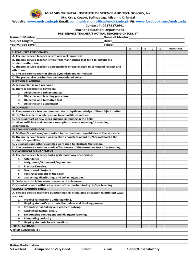 Actual Teaching Checklist PDF