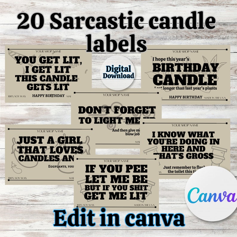Editable Sarcastic Candle Labels Template for 9 Ounce Candle Jars for