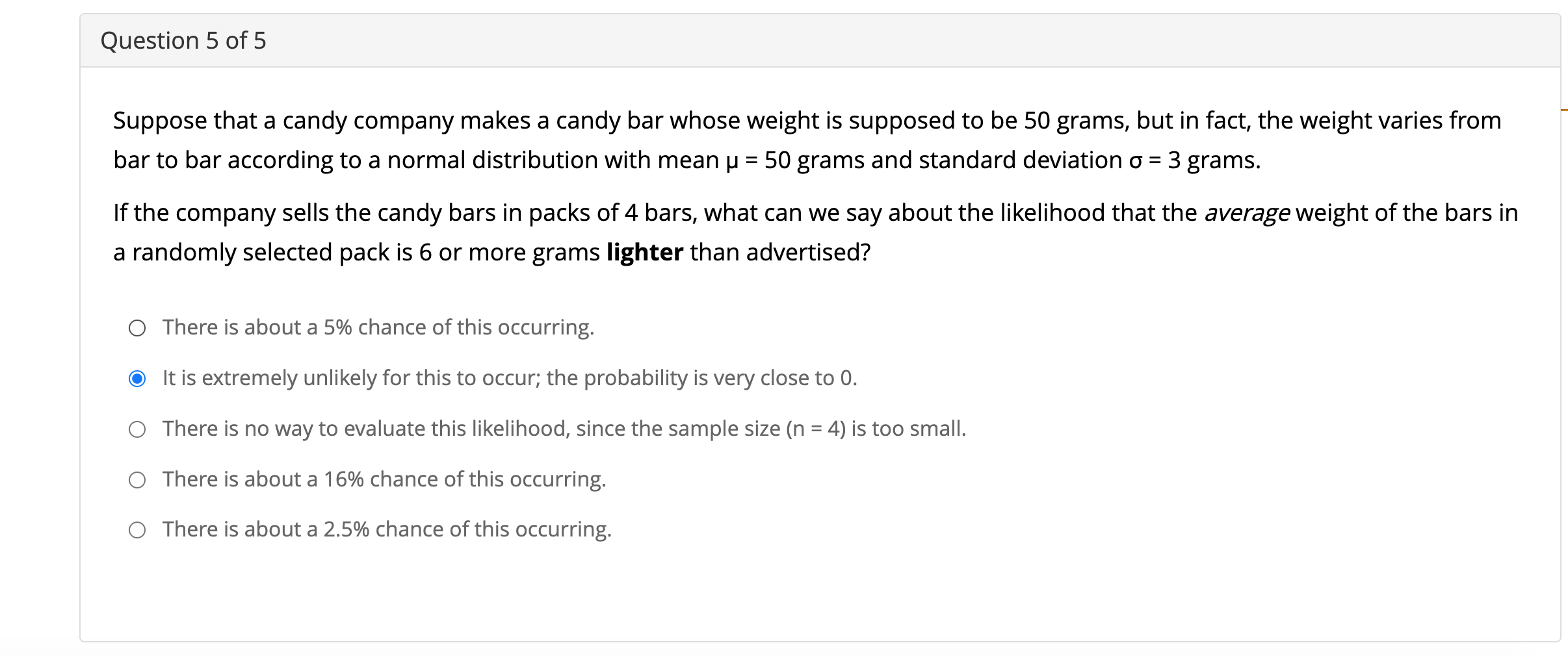 Solved Suppose that a candy company makes a candy bar whose Chegg com