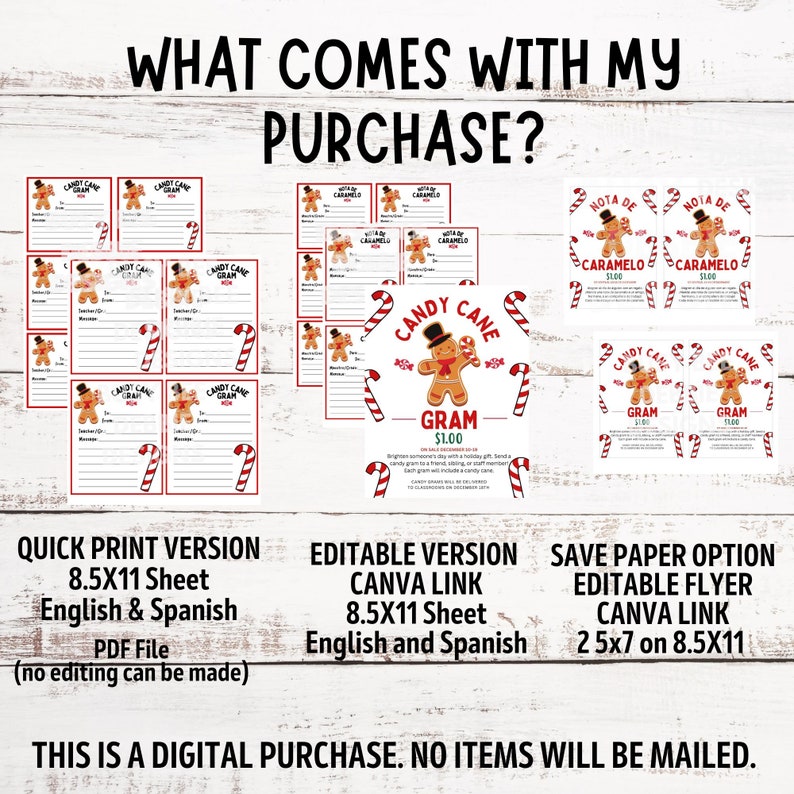 Customizable Holiday Candy Cane Gram Flyer Christmas PTO PTA