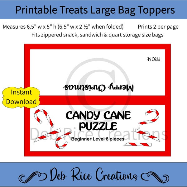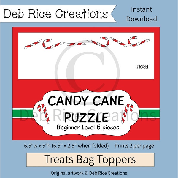Candy Cane Puzzle Expert Level Bag Toppers Printable Christmas Bag