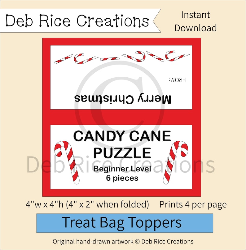 Candy Cane Puzzle Beginner Level 4x4 Printable Bag Toppers Candy Cane