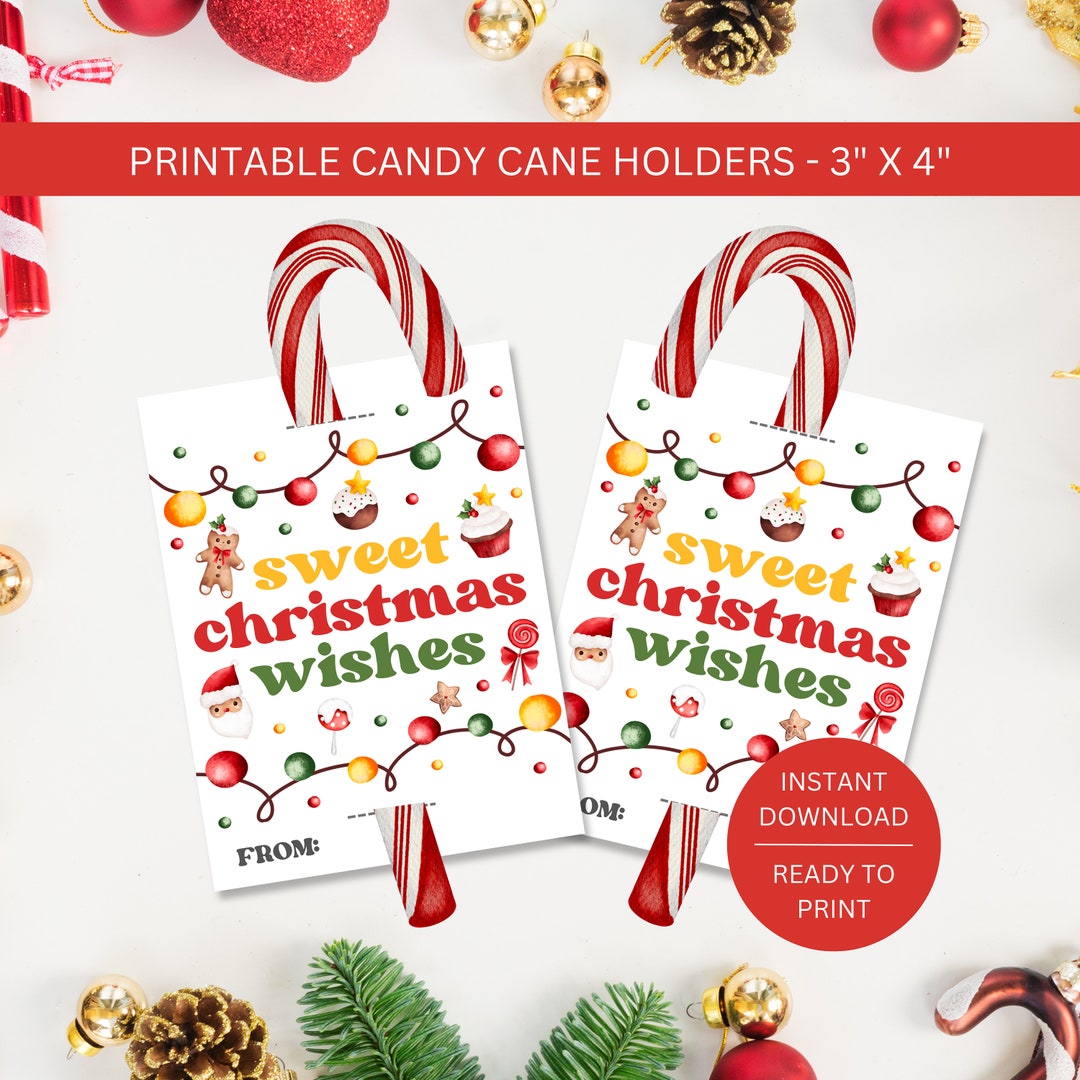 Candy Cane Holder Printable Christmas Candy Cane Tag Card Downloadable