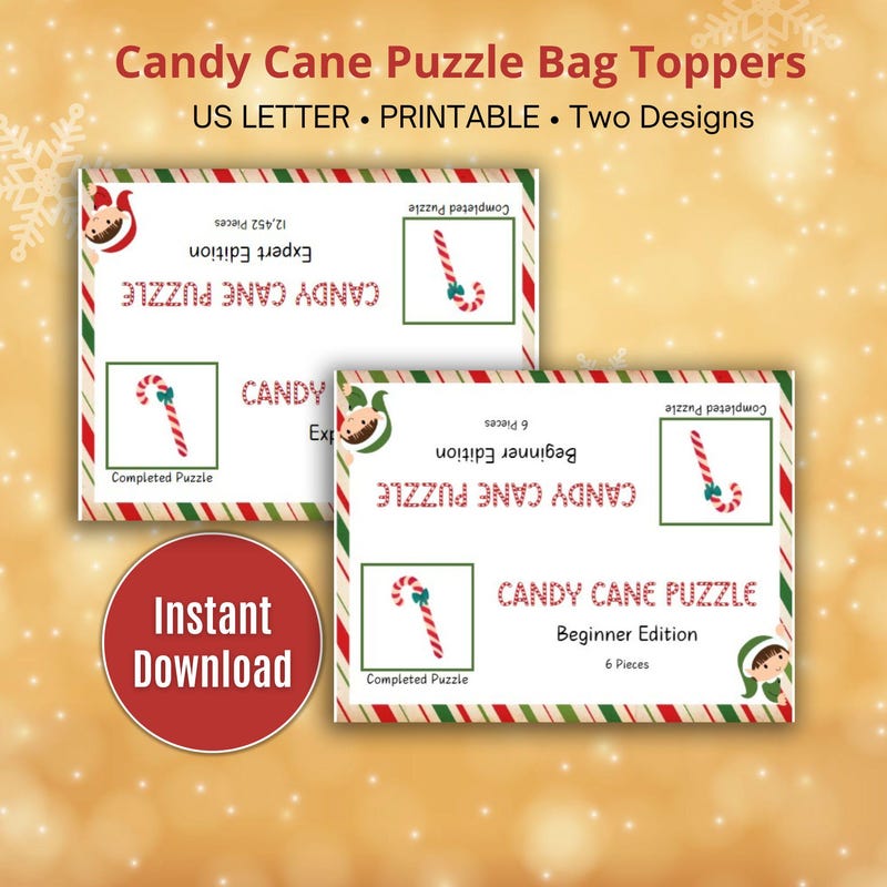 Candy Cane Puzzle Expert Level Toppers Tags Set Printable Christmas